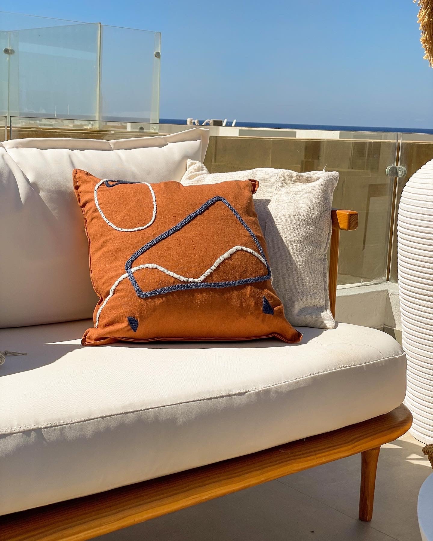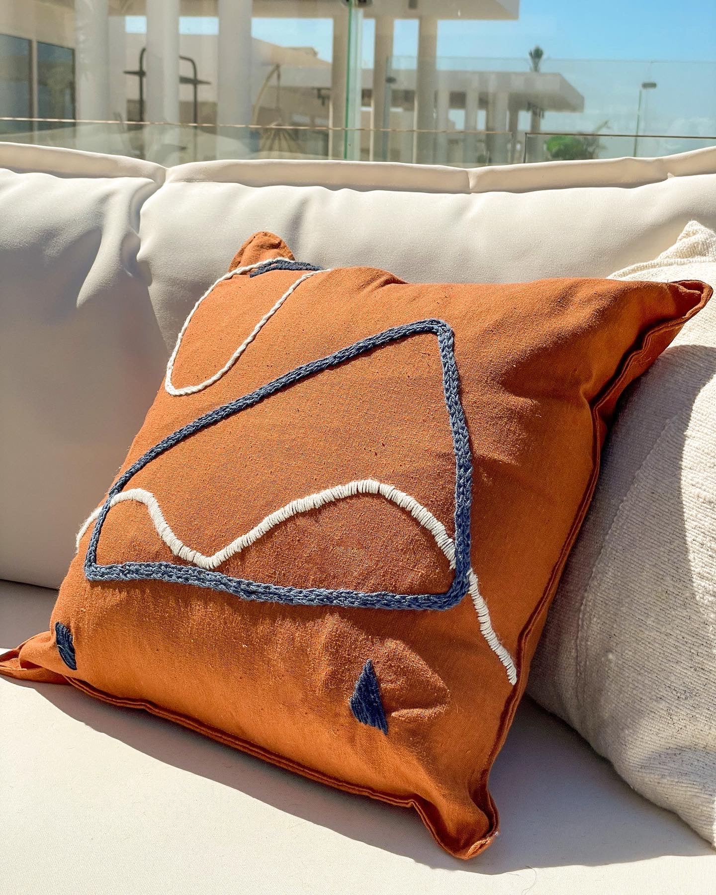 تتميز وسادة المثلثين هذه بتطريز جميل وتضفي لمسة من الأناقة على أي مساحة. يوفر تصميمها وموادها عالية الجودة راحة ودعمًا يدومان طويلاً. ارتقِ بديكور منزلك بهذه الوسادة متعددة الاستخدامات والأنيقة.