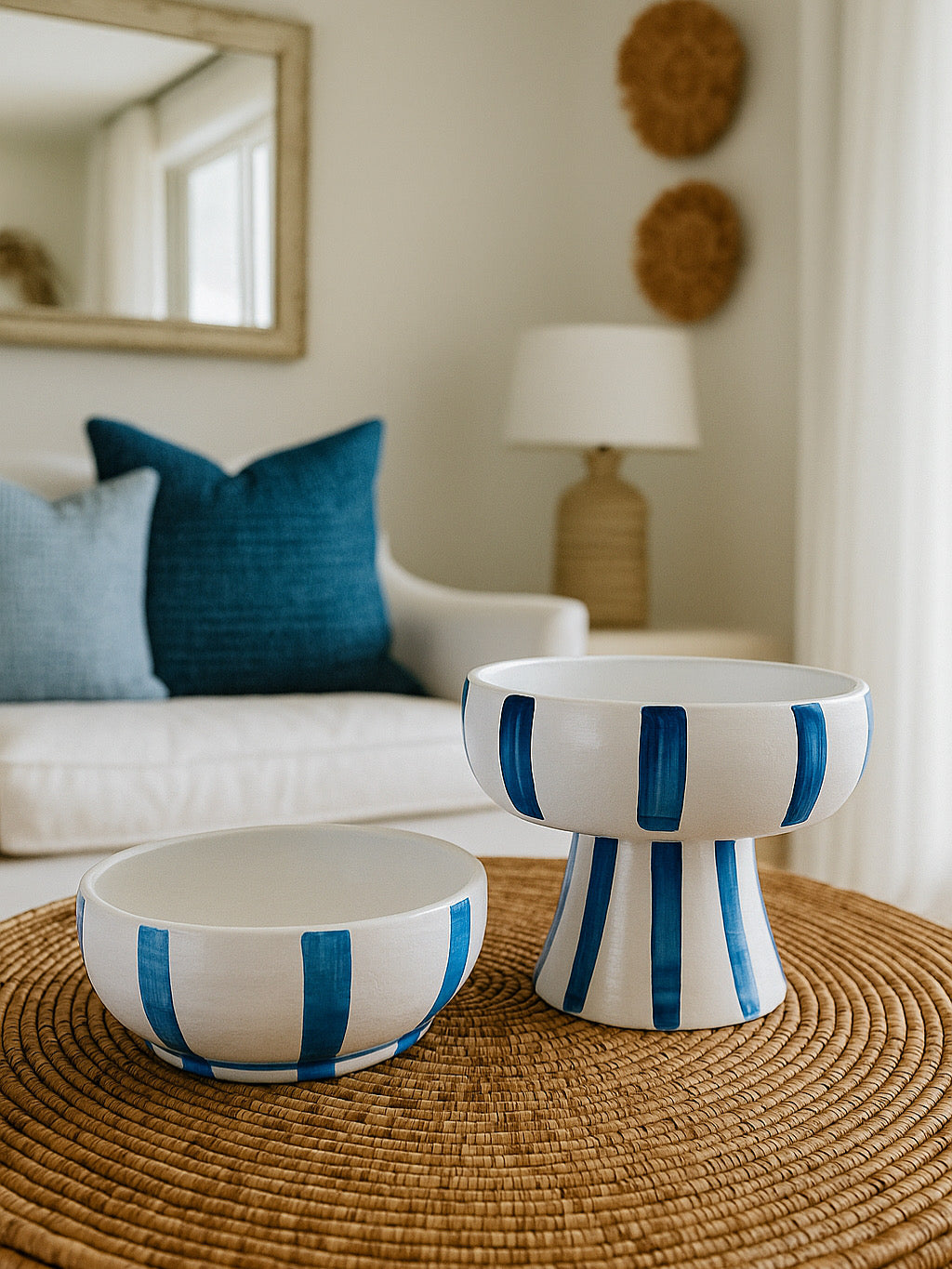 Enhance your home decor with our High and Low Set. This set includes two beautifully hand painted plates that will add a touch of elegance to any room. Whether displayed as a set or on their own, these plates are sure to impress with their unique design and expert craftsmanship.